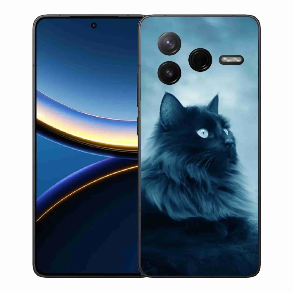 Rugalmas gél tok mmCase a Xiaomi Poco F7 Pro képével - fekete macska 1