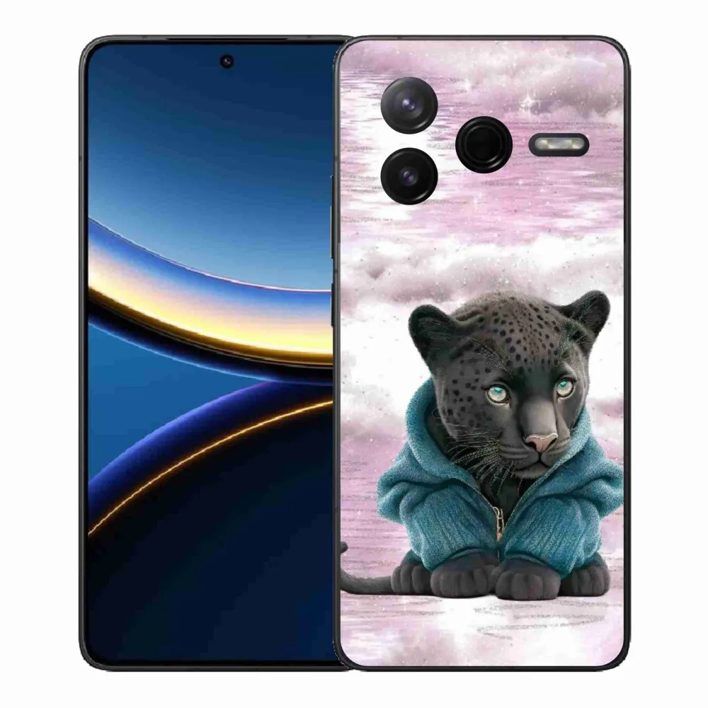 Rugalmas zselés tok mmCase a Xiaomi Poco F7 Pro képével - fekete párduc pulóverben