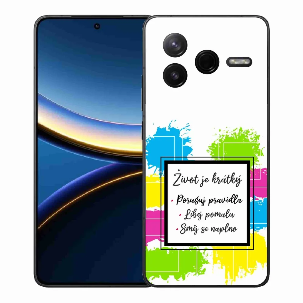Rugalmas zselés tok mmCase a Xiaomi Poco F7 Pro képével - idézet 5 fehér háttérrel