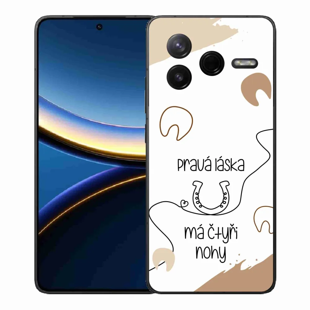 Rugalmas zselés tok mmCase a Xiaomi Poco F7 Pro képével - ló motívum fehér háttérrel