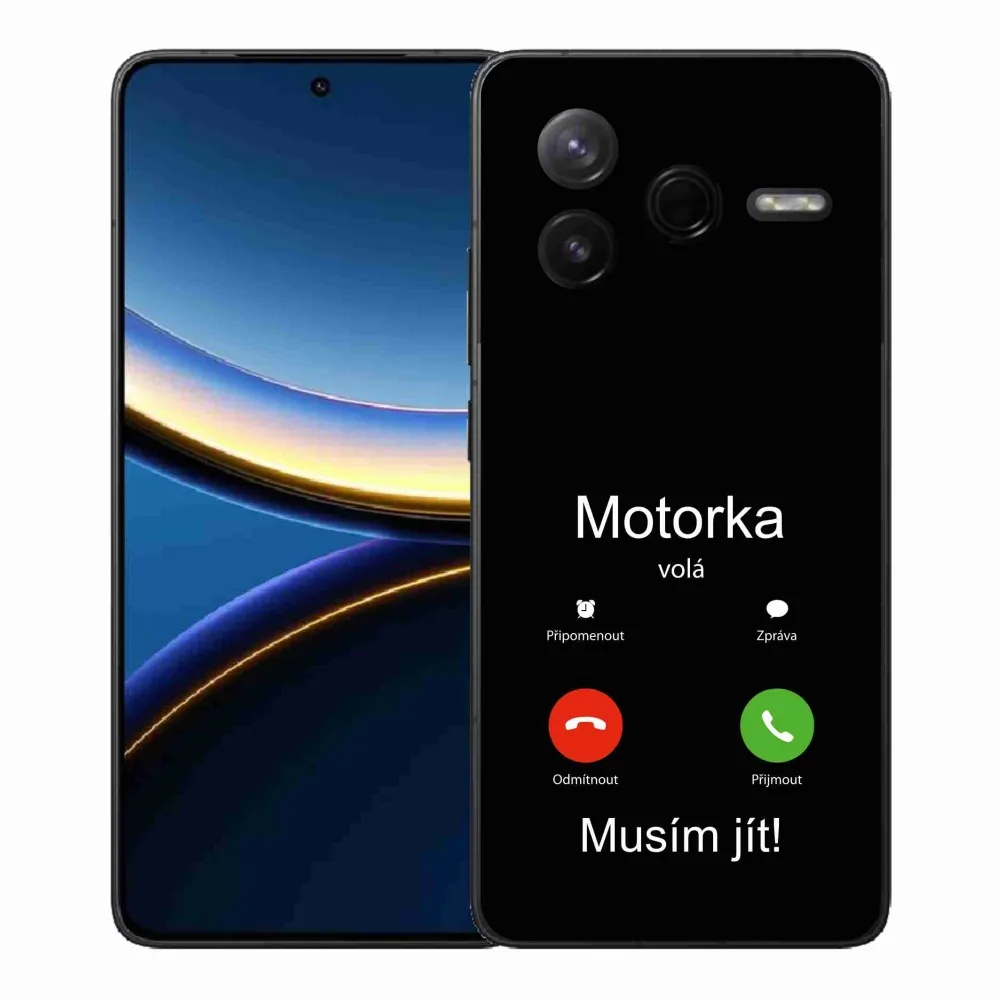 Rugalmas zselés tok mmCase a Xiaomi Poco F7 Pro képével - motoros hívás fekete háttérrel