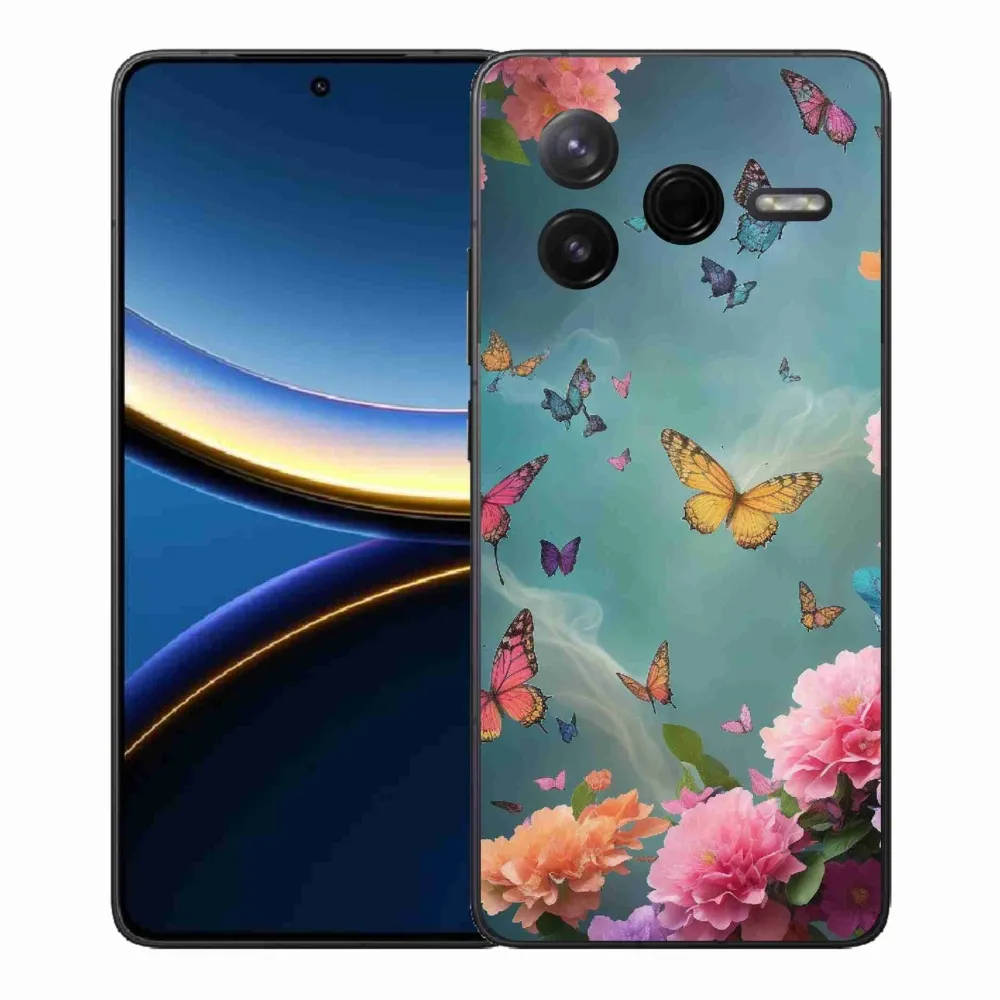 Gél borítás mmCase a Xiaomi Poco F7 Pro számára - színes virágok és pillangók