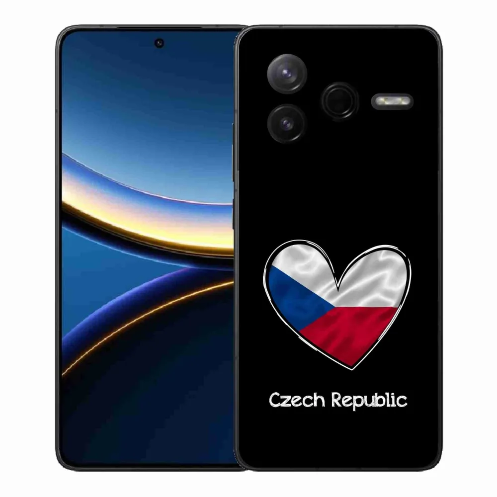 Rugalmas gél tok mmCase kép Xiaomi Poco F7 Pro - zászló szív fekete háttérrel