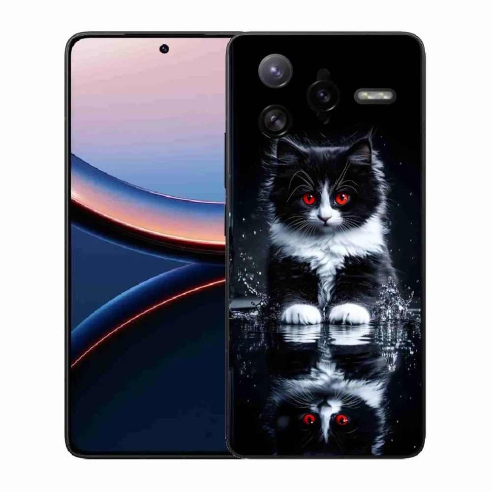 Rugalmas zselés tok mmCase a Xiaomi Poco F7 Ultra képével - fekete-fehér cica