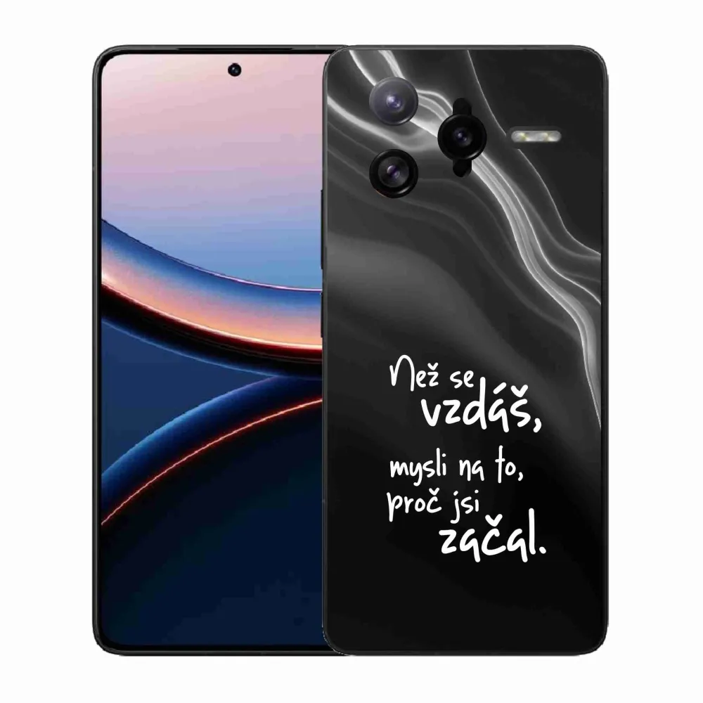 Rugalmas zselés tok mmCase a Xiaomi Poco F7 Ultra képével - idézet 2 fekete háttérrel
