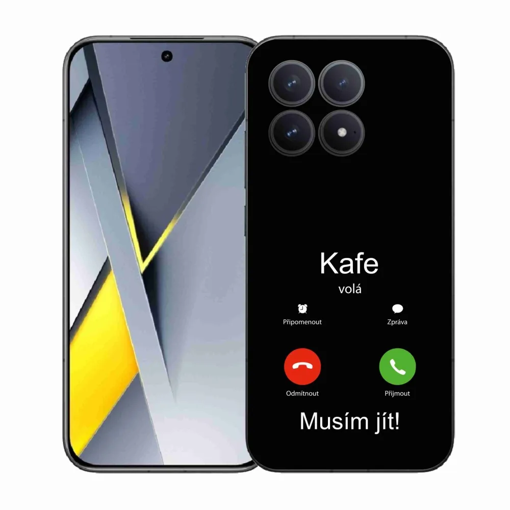 Rugalmas zselés tok mmCase a Xiaomi Poco F8 Pro képével - kávé hívások fekete háttérrel