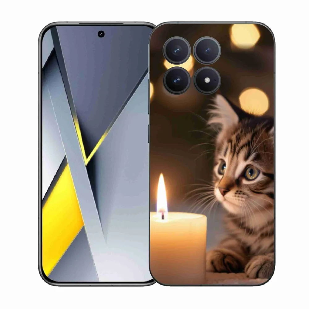 Rugalmas zselés tok mmCase a Xiaomi Poco F8 Pro képével - cica és gyertya