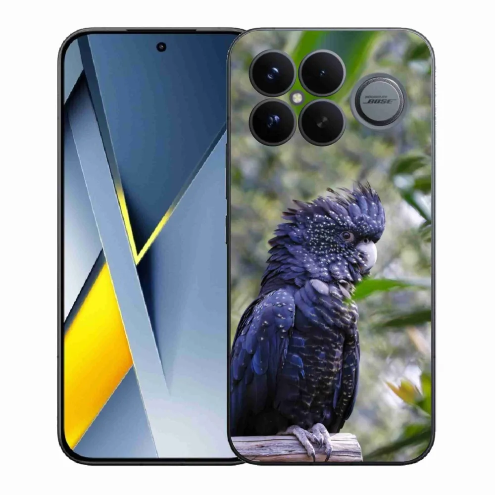 Rugalmas gél tok mmCase a Xiaomi Poco F8 Ultra képével - papagáj kakadu fekete