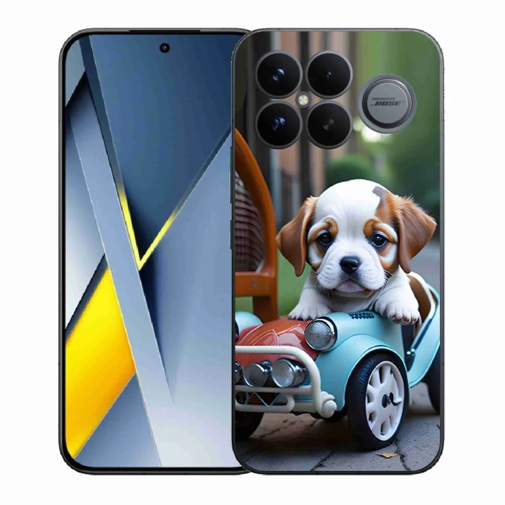 Rugalmas zselés tok mmCase képpel a Xiaomi Poco F8 Ultra - kiskutya a retro autóban