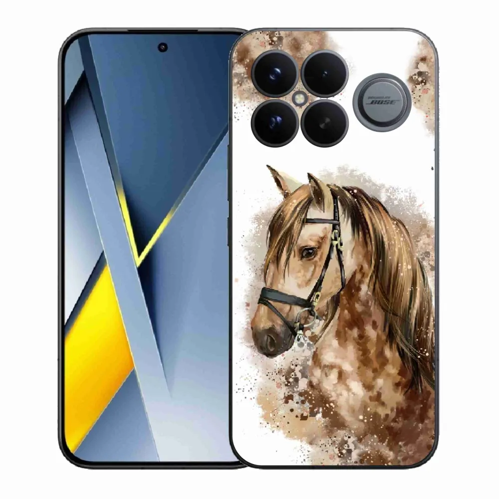 Rugalmas zselés tok mmCase a Xiaomi Poco F8 Ultra képével - barna rajzfilm ló