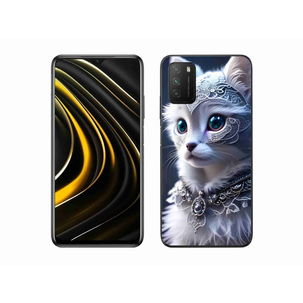 Rugalmas zselés tok mmCase képpel a Xiaomi Poco M3-on - fehér macska