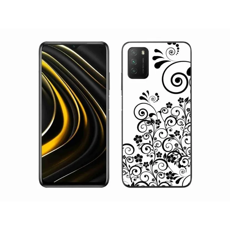 Gél borítás mmCase a Xiaomi Poco M3-hoz - fekete és fehér virágmintás