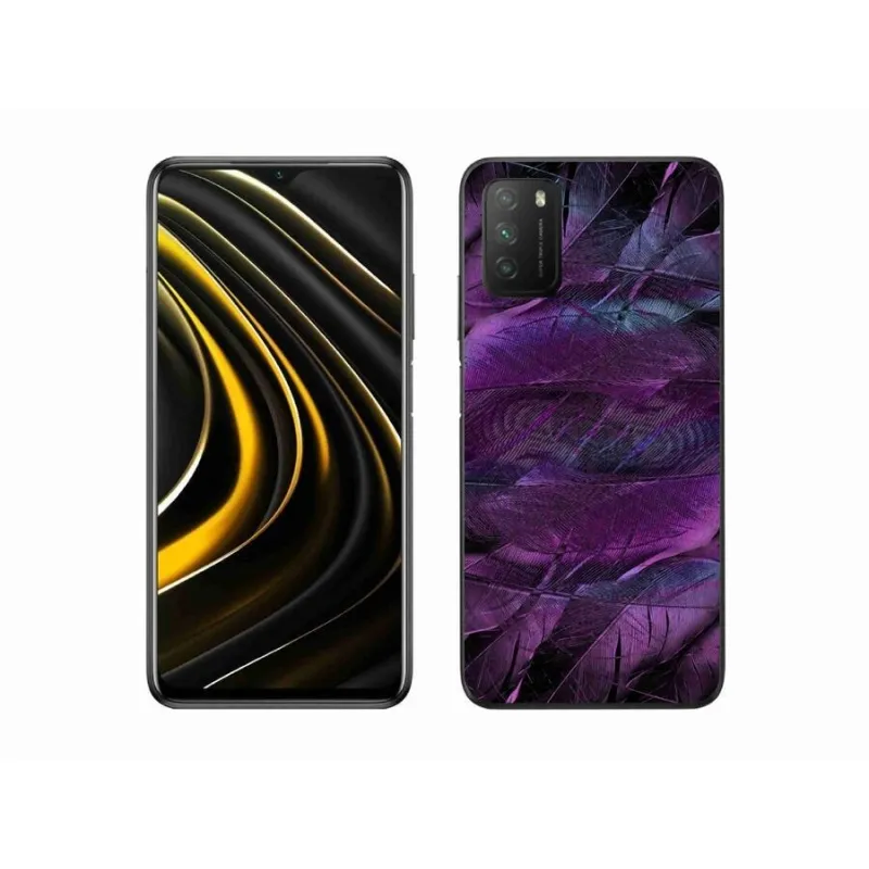 Gél borítás mmCase a Xiaomi Poco M3-hoz - lila tollak