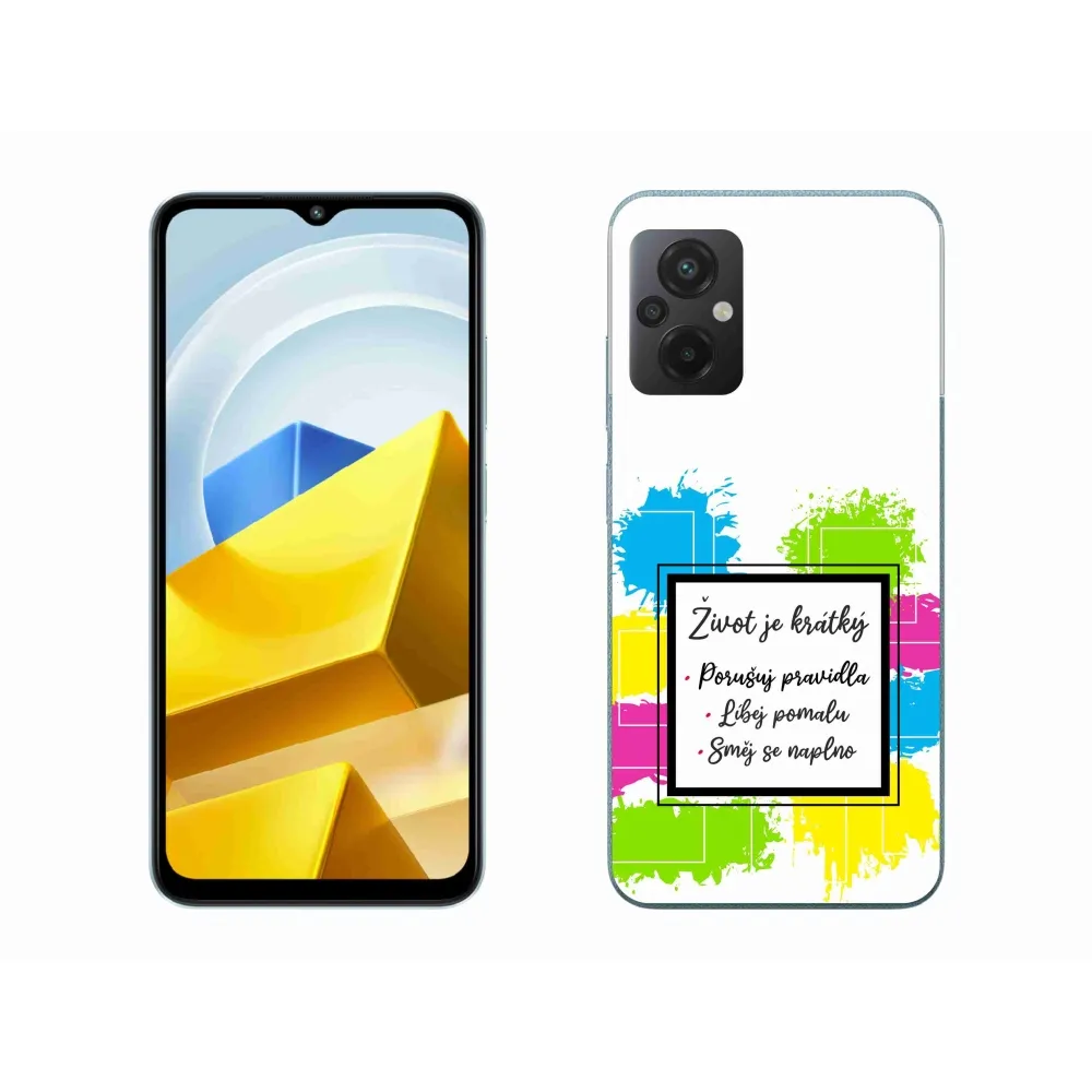Rugalmas zselés tok mmCase a Xiaomi Poco M5 4G képével - idézet 5 fehér háttérrel