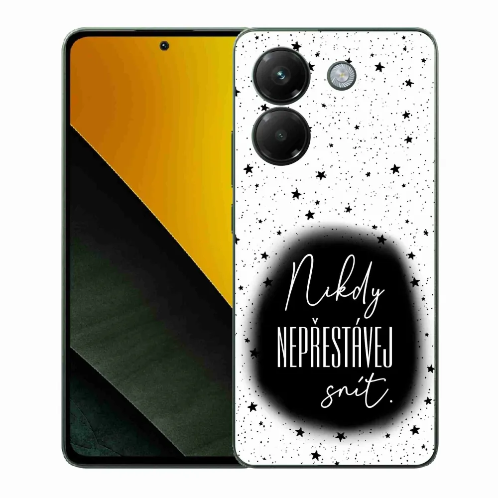 Rugalmas zselés tok mmCase a Xiaomi Poco M7 Pro 5G képével - idézet 1 fekete és fehér háttérrel