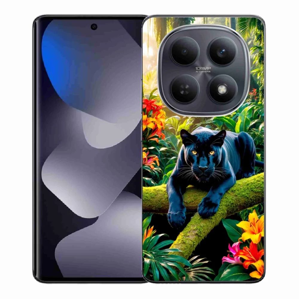 Rugalmas zselés tok mmCase kép Xiaomi Poco M8 5G/Redmi Note 15 5G/4G - fekete párduc a dzsungelben