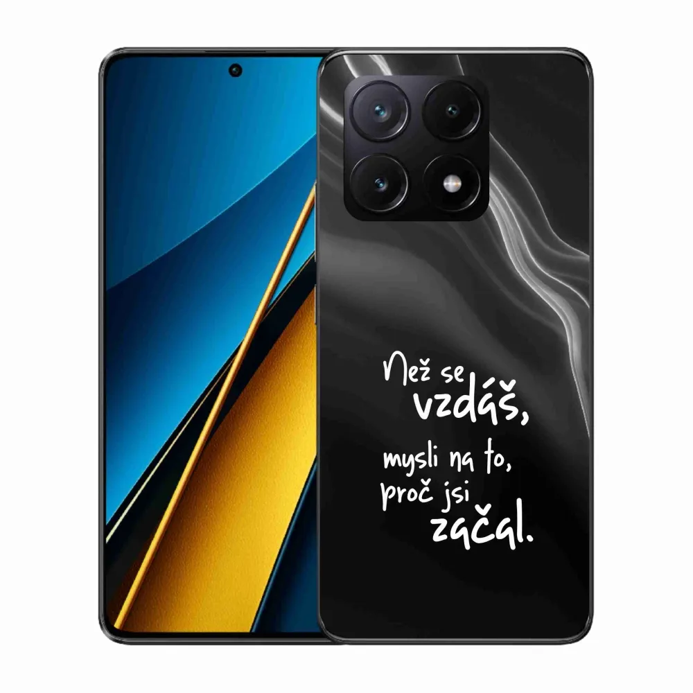 Rugalmas zselés tok mmCase a Xiaomi Poco X6 Pro 5G képével - idézet 2 fekete háttérrel