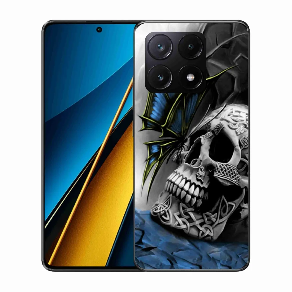 Rugalmas gél tok mmCase a Xiaomi Poco X6 Pro 5G képével - pillangó és koponya