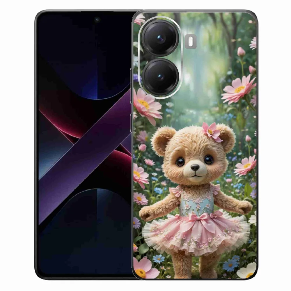 Rugalmas zselés tok mmCase képpel a Xiaomi Poco X7 Pro 5G-n - aranyos mackó virágokban