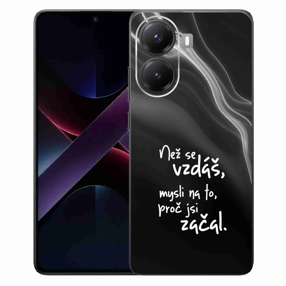 Rugalmas zselés tok mmCase a Xiaomi Poco X7 Pro 5G képével - idézet 2 fekete háttérrel