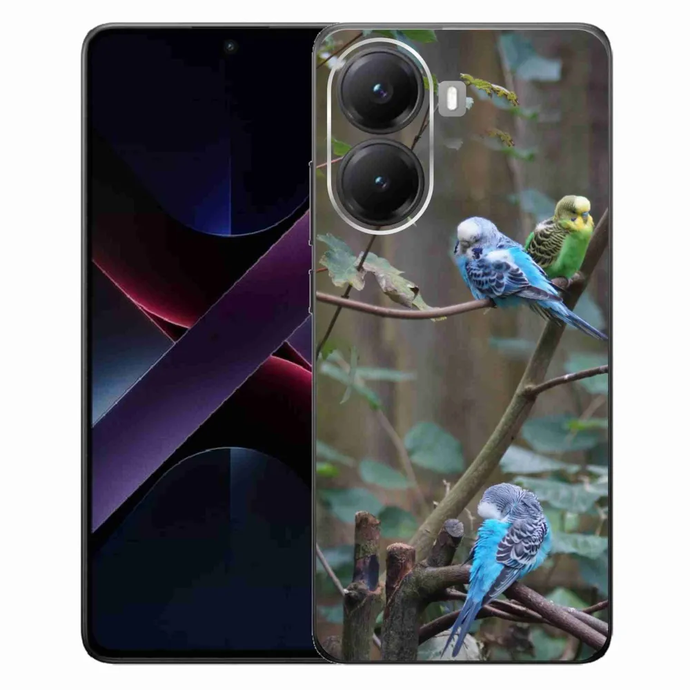 Rugalmas zselés tok mmCase a Xiaomi Poco X7 Pro 5G képével - papagájok az ágon