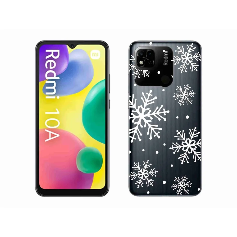 Rugalmas gél tok mmCase motívummal Xiaomi Redmi 10A - fehér hópelyhek átlátszó háttéren