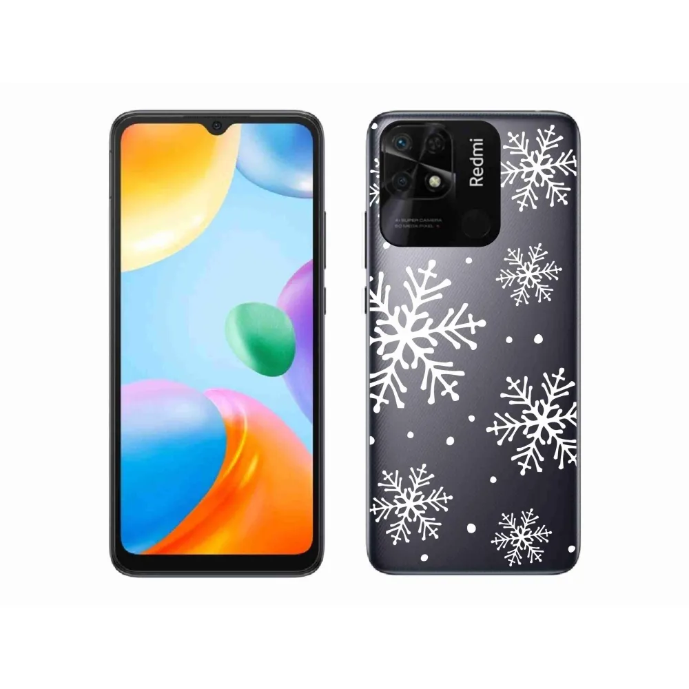 Rugalmas gél tok mmCase motívummal Xiaomi Redmi 10C - fehér hópelyhek átlátszó háttéren
