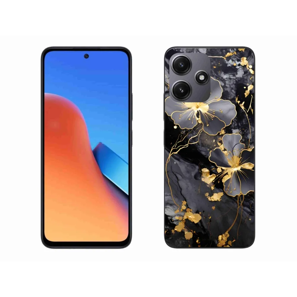 Rugalmas zselés tok mmCase kép Xiaomi Redmi 12 5G - arany virágokkal