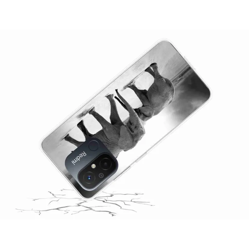 Gél borítás mmCase a Xiaomi Redmi 12C-hez - fekete és fehér elefántok