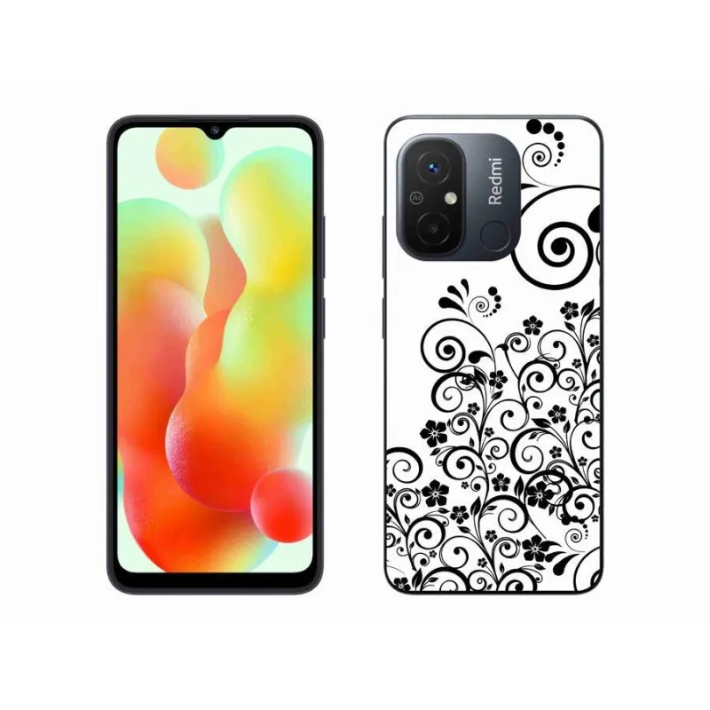 Gél borítás mmCase a Xiaomi Redmi 12C-hez - fekete és fehér virágminták