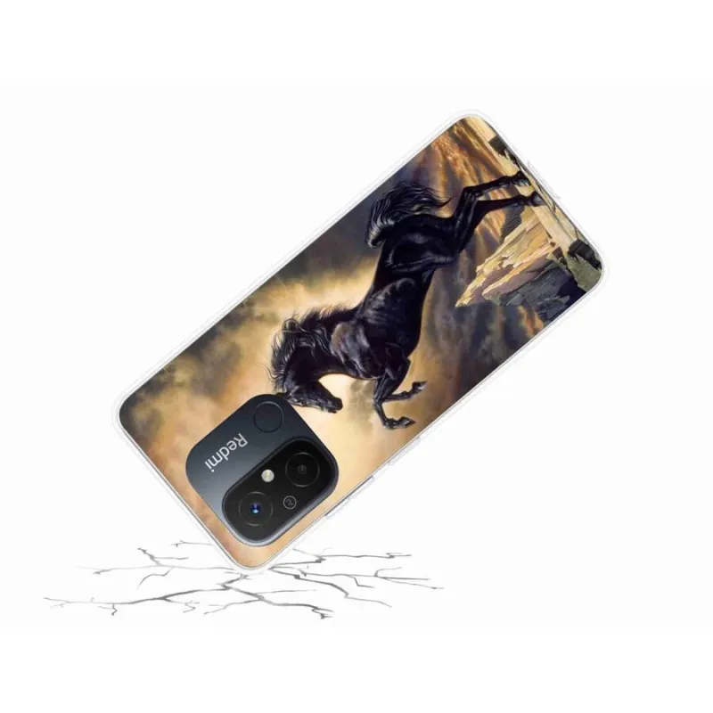 Gél borítás mmCase a Xiaomi Redmi 12C-hez - fekete rajzfilm ló