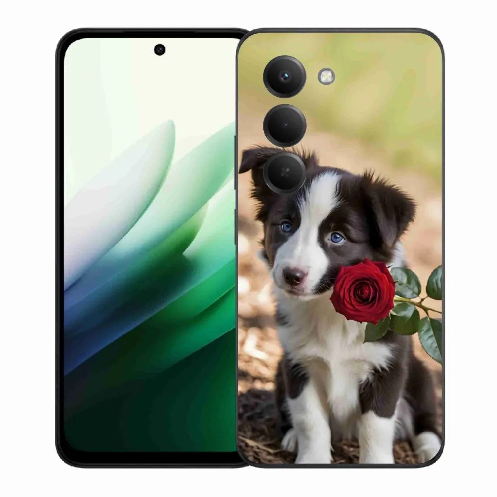 Rugalmas zselés tok mmCase kép Xiaomi Redmi 15 5G 169mm - aranyos border collie rózsával