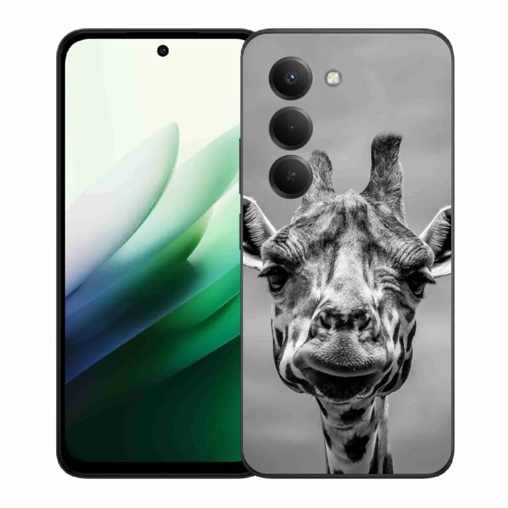 Rugalmas zselés tok mmCase kép Xiaomi Redmi 15 5G - fekete-fehér zsiráf képével