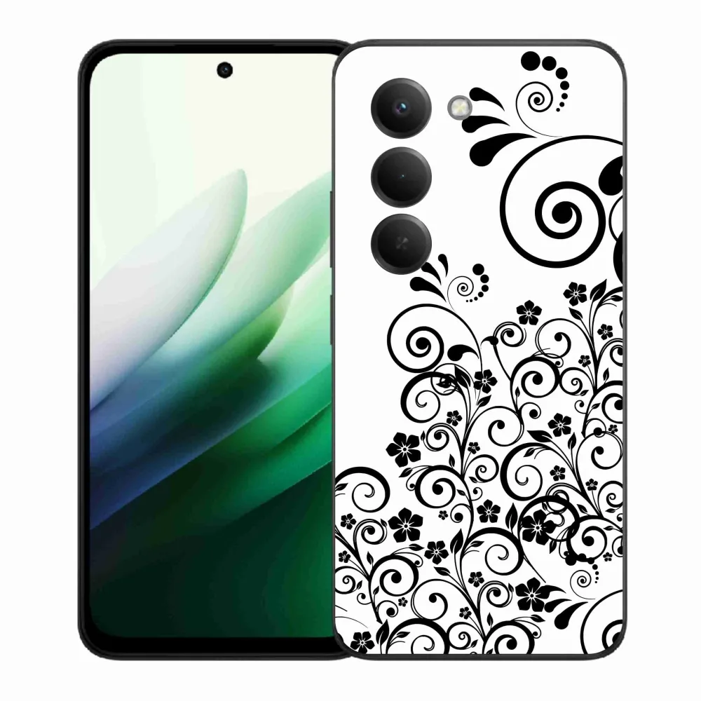 Rugalmas gél tok mmCase kép Xiaomi Redmi 15 5G - fekete-fehér virágmintás tokkal