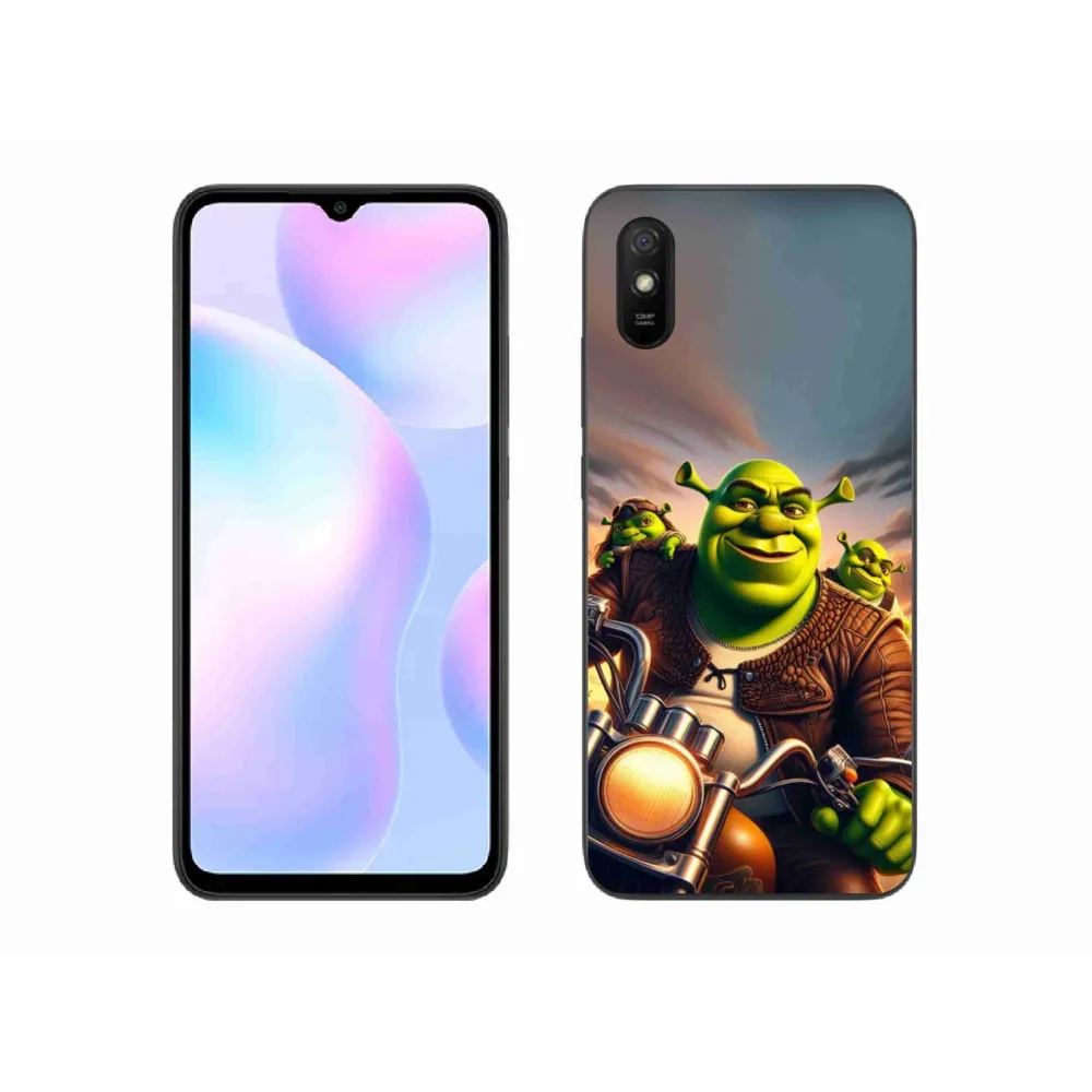 Rugalmas zselés tok mmCase kép Xiaomi Redmi 9A - shrek egy motorkerékpárra