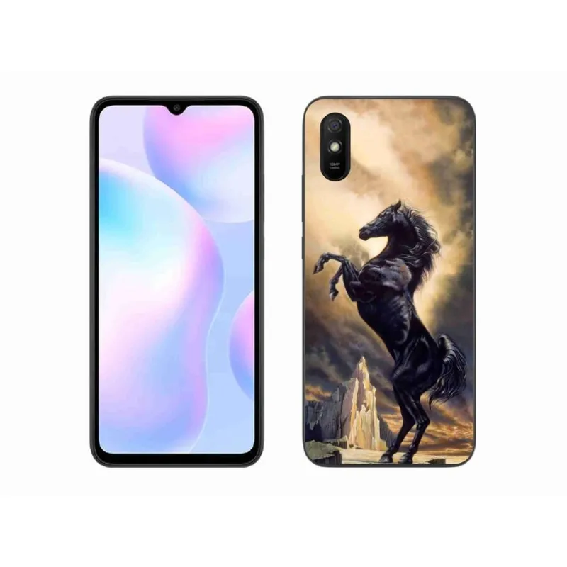 Gél borítás mmCase a Xiaomi Redmi 9AT-hoz - fekete rajzfilm ló