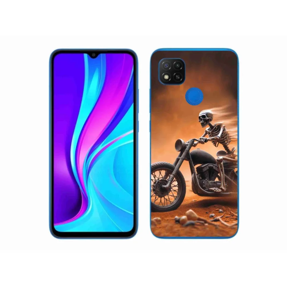 Rugalmas gél tok mmCase kép Xiaomi Redmi 9C - csontváz egy motorkerékpárra