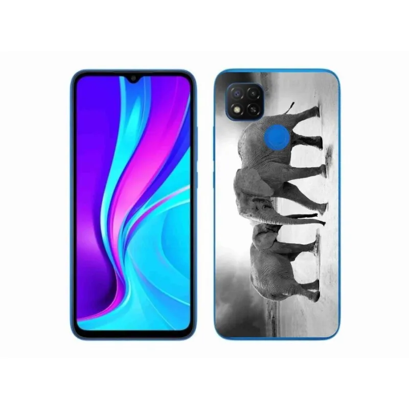 Gél borítás mmCase a Xiaomi Redmi 9C-hez - fekete és fehér elefántok