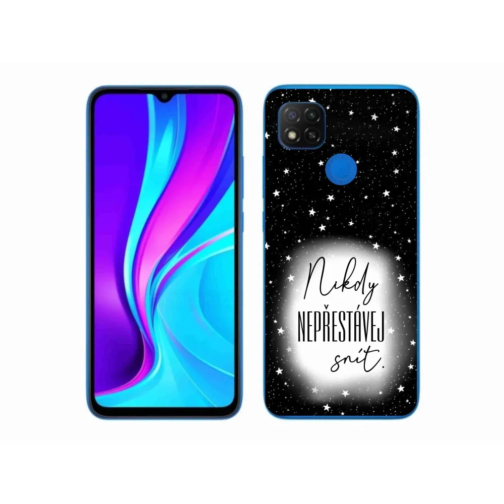 Rugalmas gél tok mmCase kép Xiaomi Redmi 9C - idézet 1 fehér és fekete háttérrel