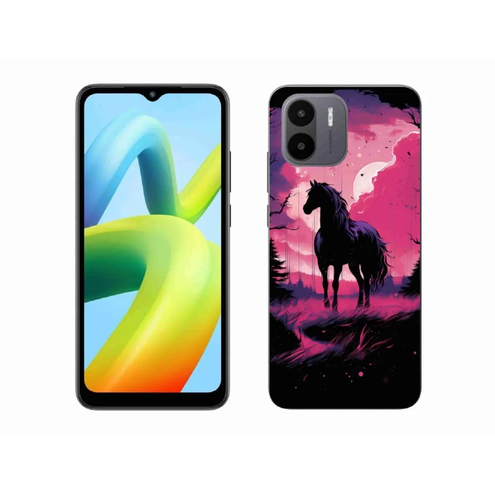 Rugalmas gél tok mmCase kép Xiaomi Redmi A1/Redmi A2 - fekete rajzfilm ló 1
