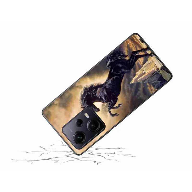 Gél borítás mmCase a Xiaomi Redmi Note 12 Pro+ 5G számára - fekete rajzfilm ló