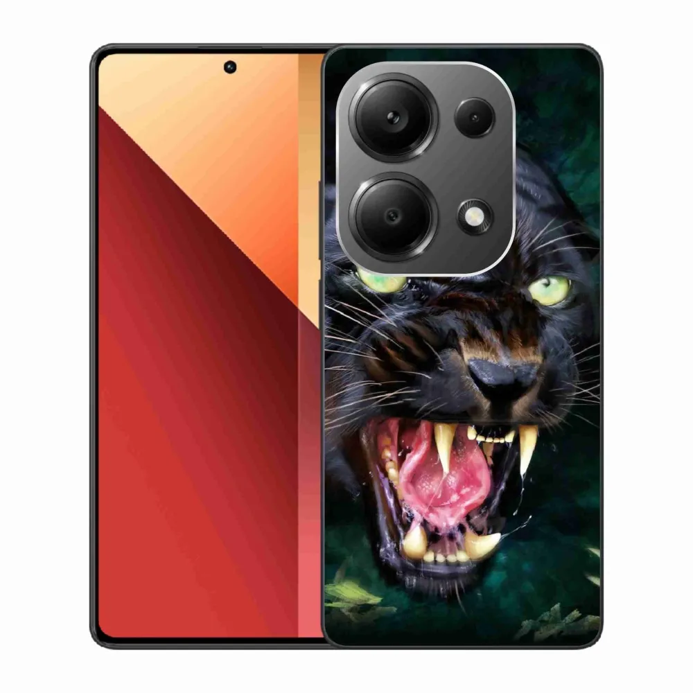 Rugalmas zselés tok mmCase a Xiaomi Redmi Note 13 Pro 4G/Poco M6 Pro képével - dühös fekete párduc