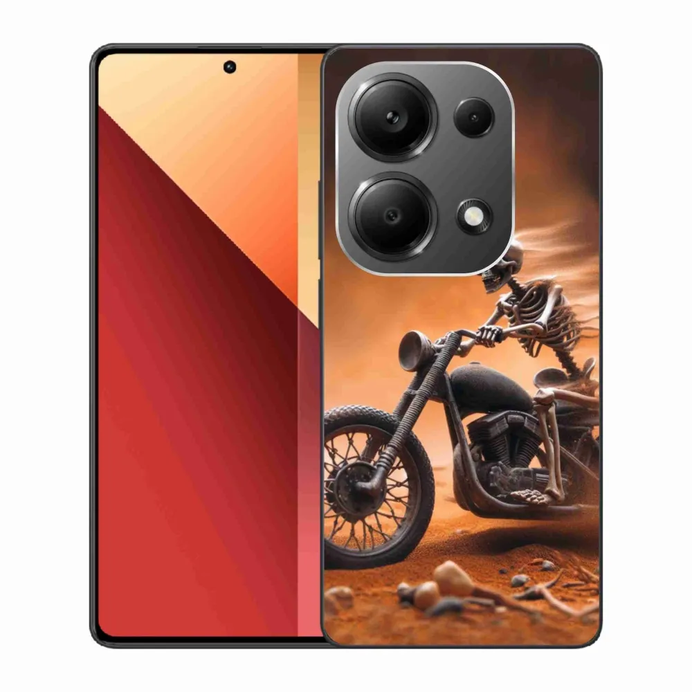 Rugalmas zselés tok mmCase a Xiaomi Redmi Note 13 Pro 4G/Poco M6 Pro képével - csontváz egy motorkerékpáron