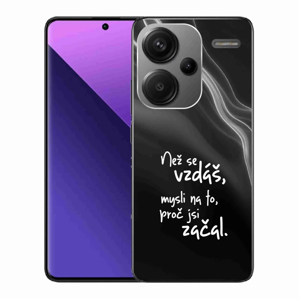 Rugalmas zselés tok mmCase a Xiaomi Redmi Note 13 Pro+ 5G képével - idézet 2 fekete háttérrel