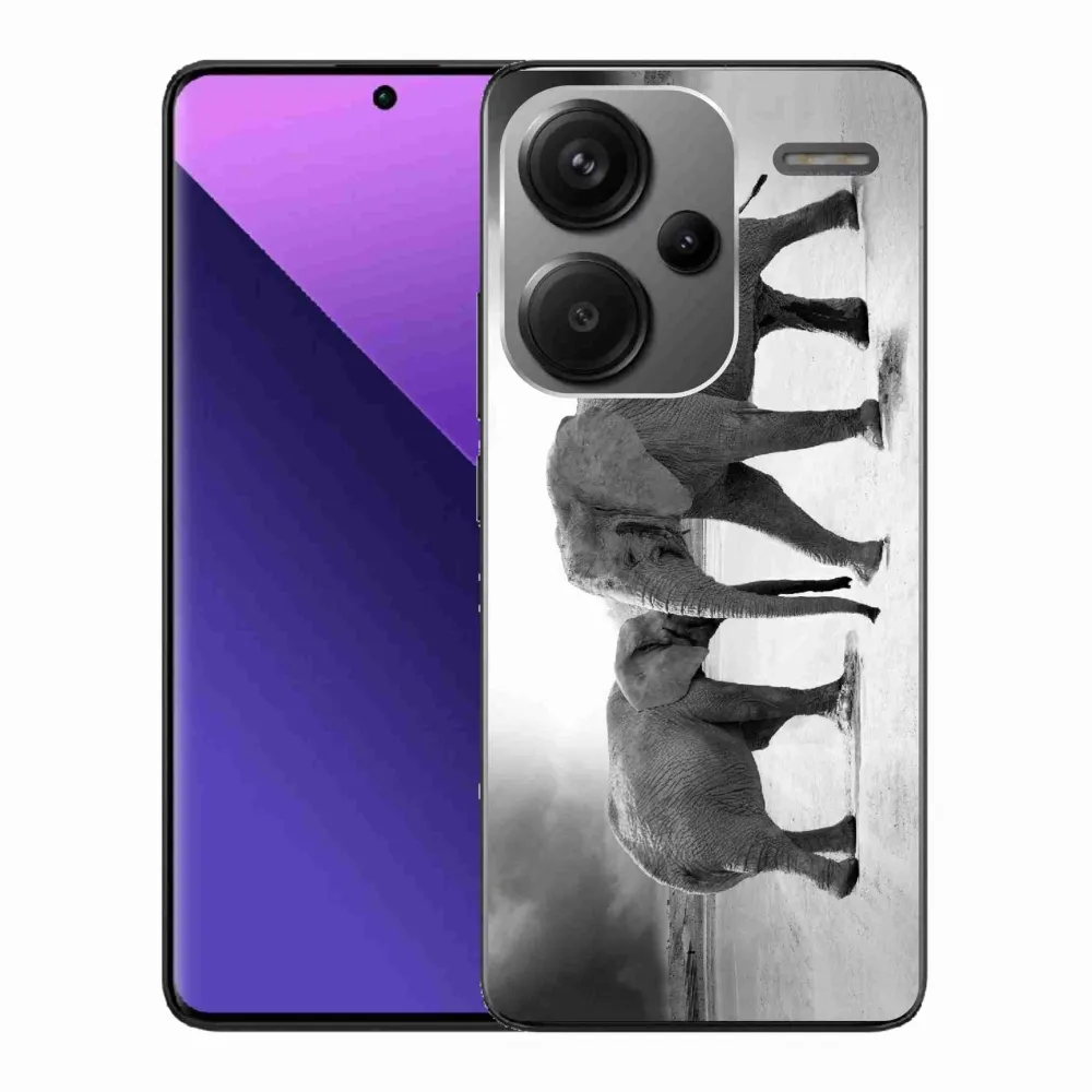 Rugalmas gél tok mmCase a Xiaomi Redmi Note 13 Pro+ 5G képével - fekete és fehér elefántok
