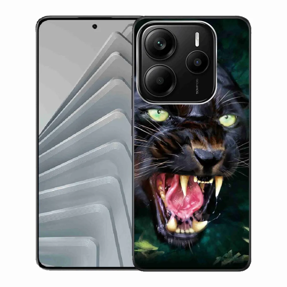 Rugalmas zselés tok mmCase kép Xiaomi Redmi Note 14 5G - dühös fekete párduc