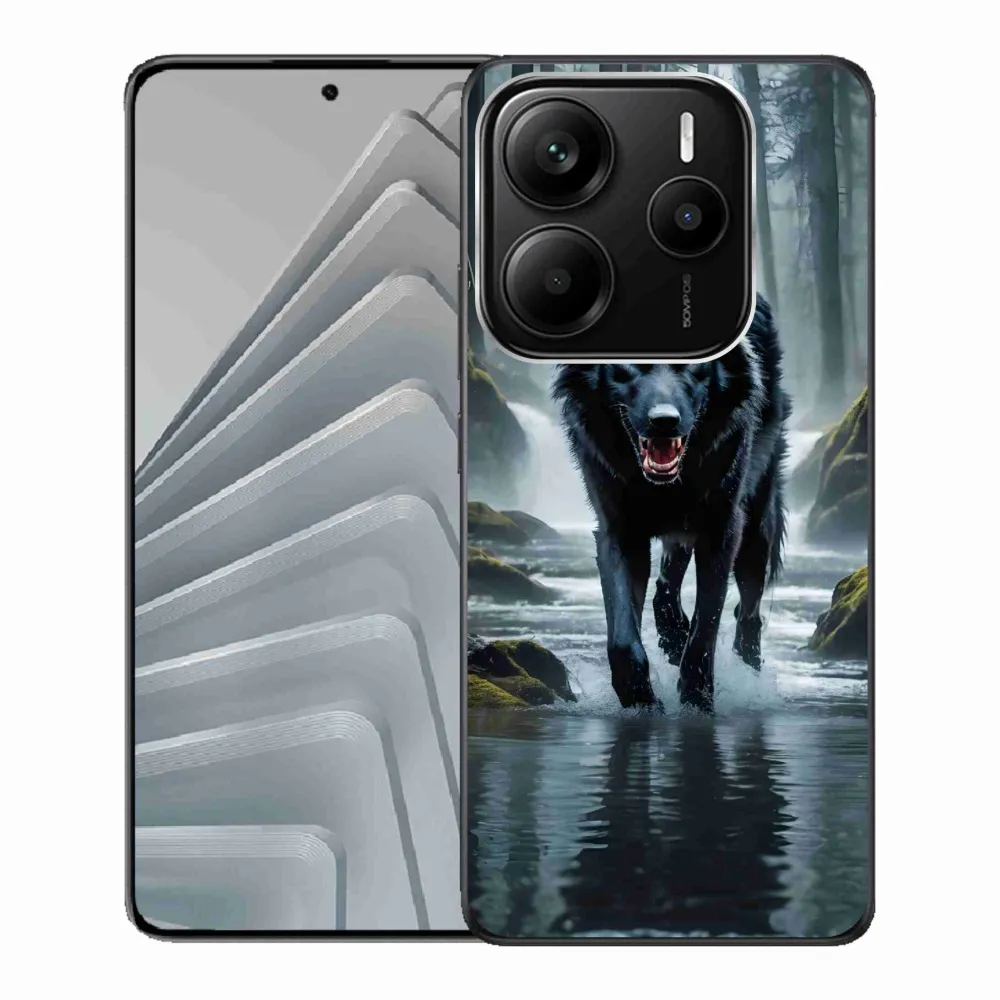 Rugalmas gél tok mmCase képpel a Xiaomi Redmi Note 14 5G - fekete farkas