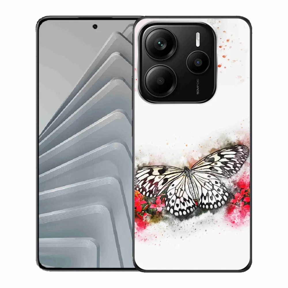Rugalmas zselés tok mmCase kép Xiaomi Redmi Note 14 5G - fekete-fehér pillangó