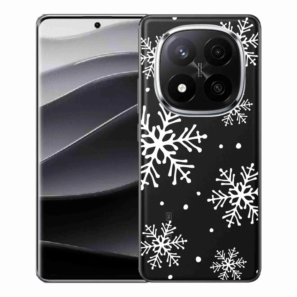 Rugalmas zselés tok mmCase képpel a Xiaomi Redmi Note 14 Pro+ 5G - fehér hópelyhek átlátszó háttéren
