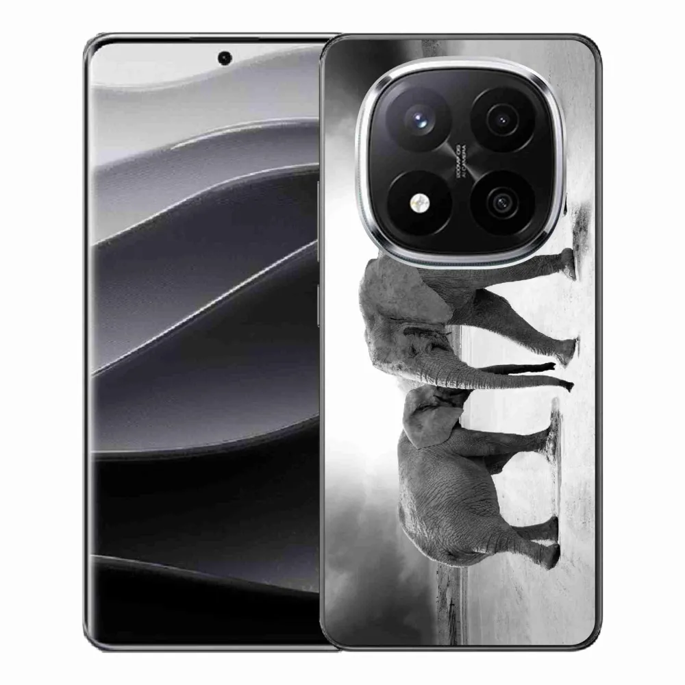 Rugalmas zselés tok mmCase a Xiaomi Redmi Note 14 Pro+ 5G képével - fekete és fehér elefántok